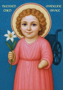 During the years that have followed her passing, Maddie continually touches the lives of many. Her presence is felt both at church and in the lives of those she touched, and she continues to be an inspiration for those who struggle to find joy in the midst of illnesses and difficulties. A locally venerated saint and daughter of God, Madeline Grace is a patron for those with disabilities, for perseverance, for children, for praise, for joy, for love.
